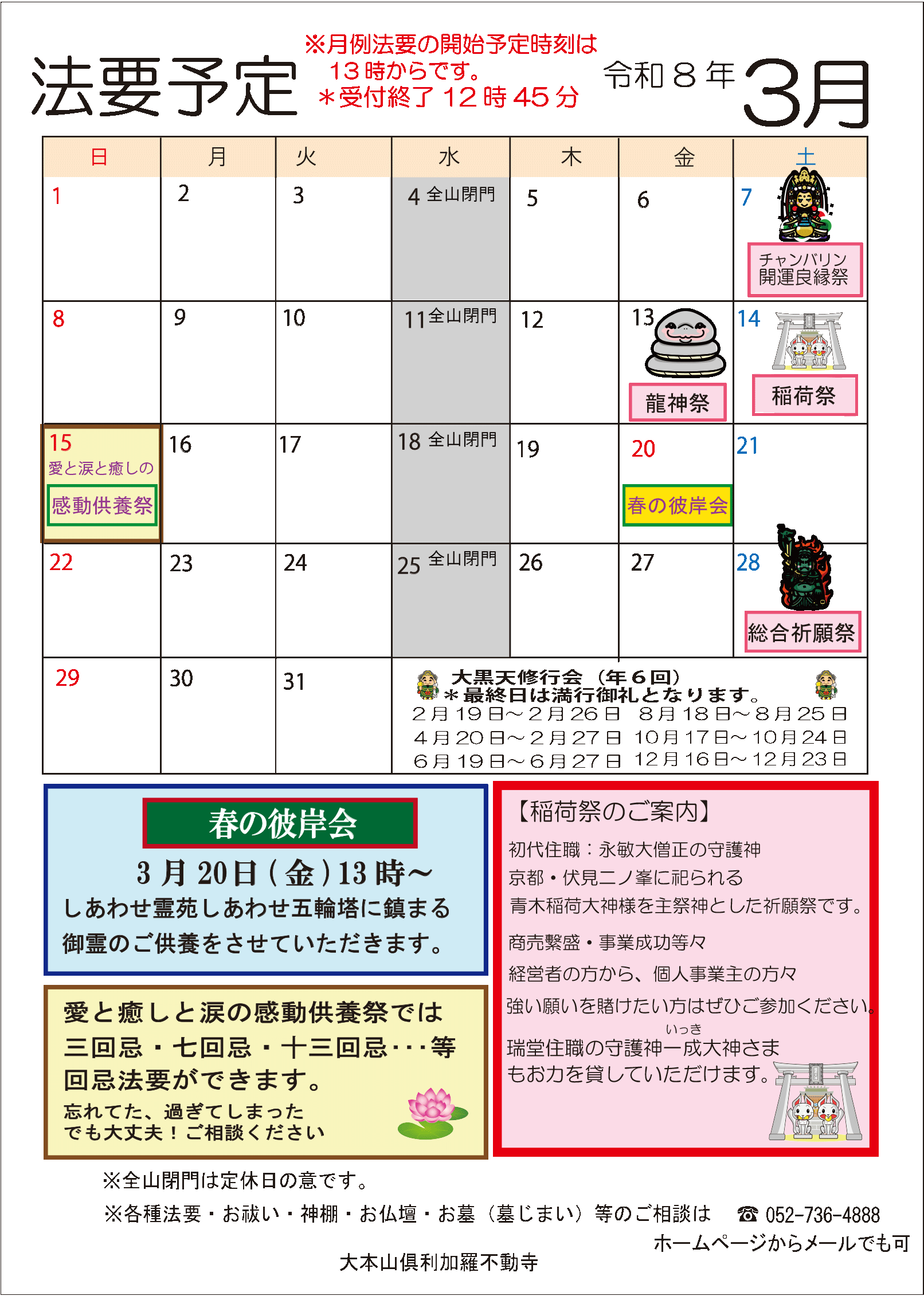 3月は以下の予定で行事を執り行います。